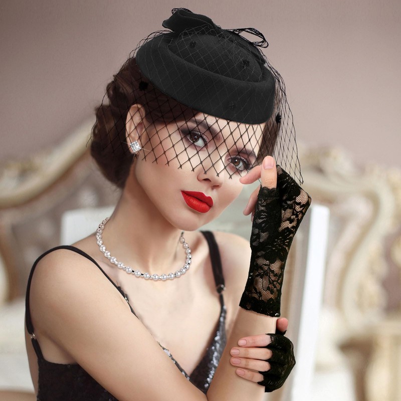 - Proper Size for Wear: the fascinator hat for women is about 14 x 16 cm/ 5.51 x 6.3 inches, the bead necklace is about 150 cm/ 59.06 inches, the mesh gloves are about 26 cm/ 10.24 inches in length, the drop earrings are about 6.5 cm/ 2.5 inches in length, suitable for most girls and women to use