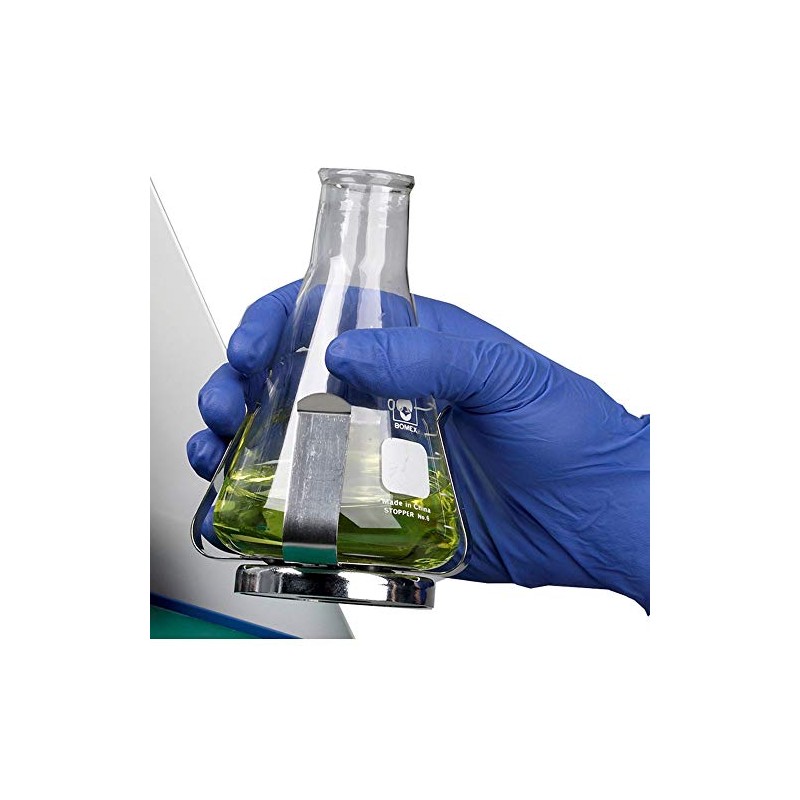 - Magnetic flask clamp secures 1,000mL Erlenmeyer flask to a shaker platform for mixing or aerating operations