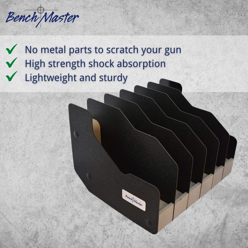 BenchMaster Pistol Rack, Handgun Safe Storage, Holds 6 Pistols, Secure Gun Holder Organizer, Kydex and High-Density Foam, No Metal, Lightweight, Sturdy, No Flex, Made in USA (6 Guns, Horizontal)