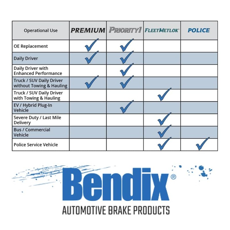 - ENHANCED SAFETY: Bendix Priority 1 Brake Pads are designed to reduce brake fade and ensure consistent braking performance, enhancing safety on the road