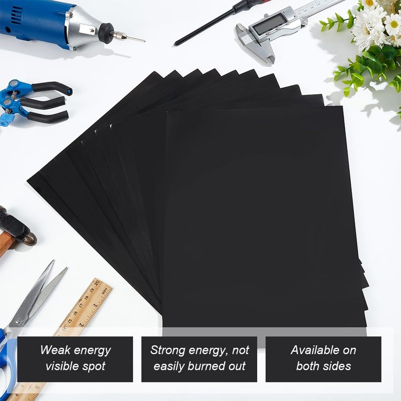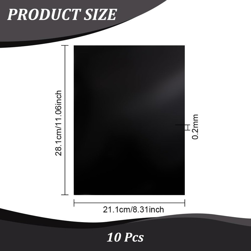- Package includes: the package contains 10 sheets of double-sided black laser test paper with the dimensions 280 x 210 mm / 11 x 8.3 inches and a thickness of 0.2 mm.