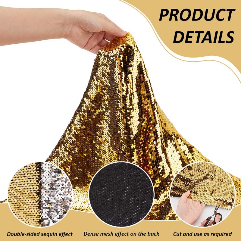 BENECREAT 100 x 33 cm Two-Tone Sequin Fabric, Reversible Shimmering Sewing Fabric, Hinged Graffiti Fabric, Mermaid Sequin Fabric, Sensory Wall, Sensory Room Decor, Gold and Silver