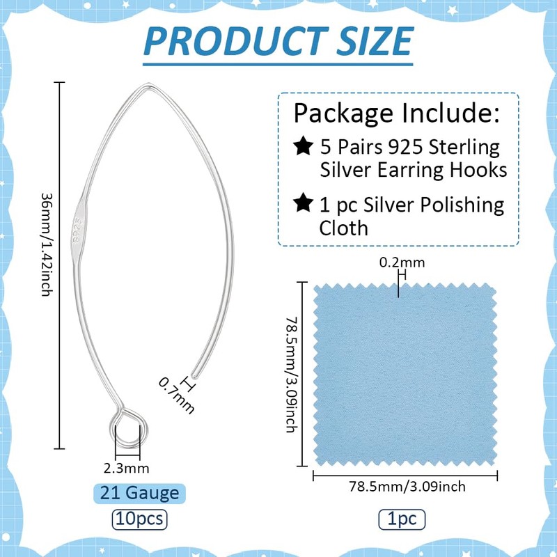 • Package Included: 10pcs(5pairs) Sterling Silver Earring Hooks and 1 Silver Polishing Cloth, the product comes in a clear plastic container, protects the product and easy to store, great for diy jewelry making projects.