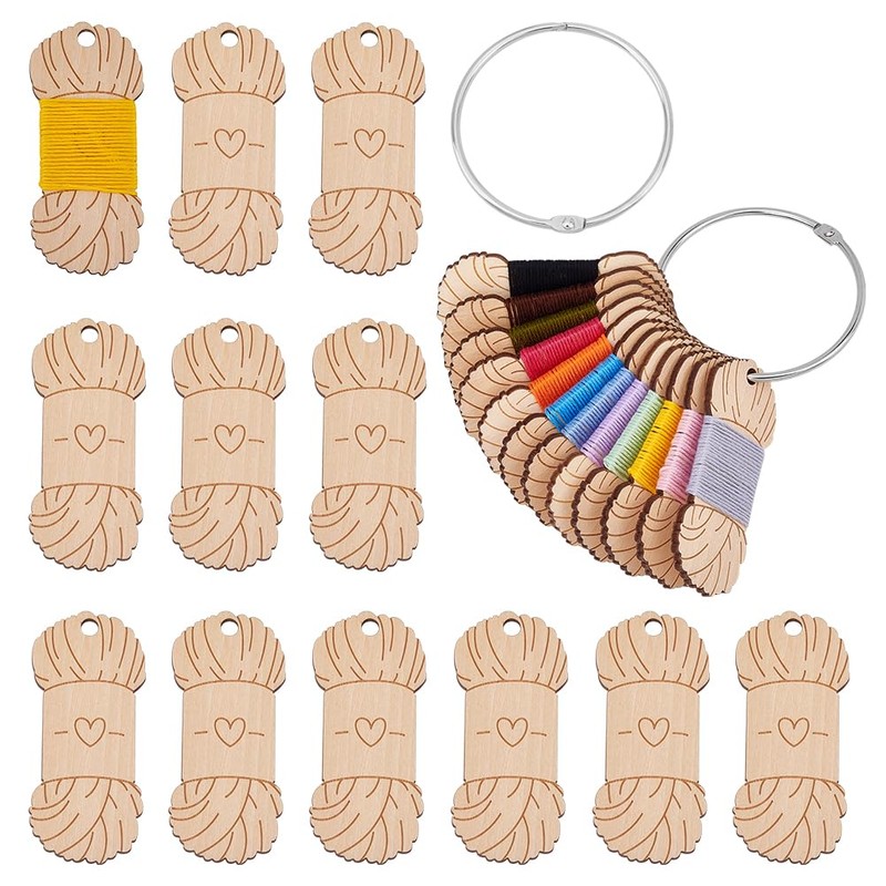 BENECREAT 12Pcs Wooden Blank Yarn Peg, Creative Woolen Thread Winding Boards, Knitting Yarn Holder with Iron Ring for Embroidery Needlework Macrame Weaving Cord and Sewing Threads