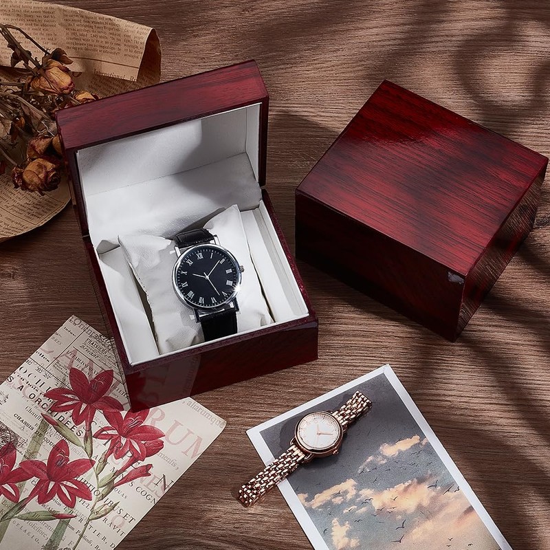 BENECREAT 時計ケース 木製 2個 腕時計収納ボックス コレクションケース 1本用 10x11.2cm 腕輪 ブレスレット ウオッチボックス 枕付き 高級 持ち運び 旅行 出張 プレゼントに