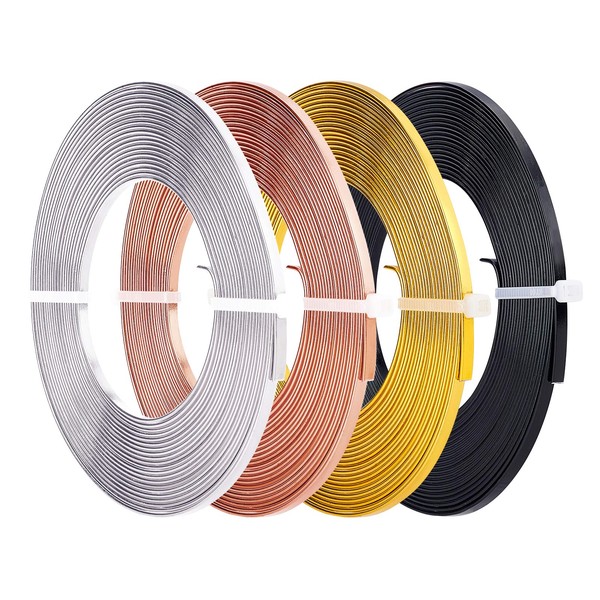 BENECREAT 20 m 4 Colours Aluminium Flat Wire 3 mm Wide Silver Gold Bendable Craft Wire for Bezel, Jewellery Earring Ring Making (5 m/Colour)