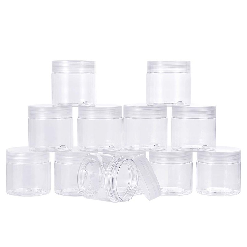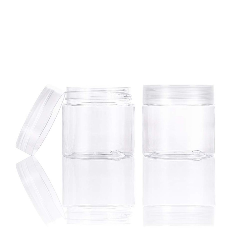 - [Wide Mouth Design]: These wide mouth plastic jars allow for easy filling and removing, easy clear and refillable, for you to use for many times.