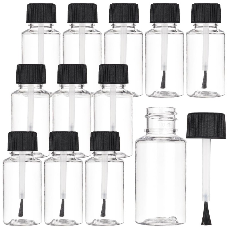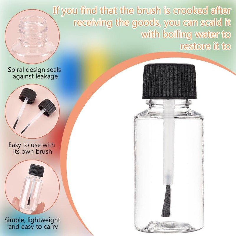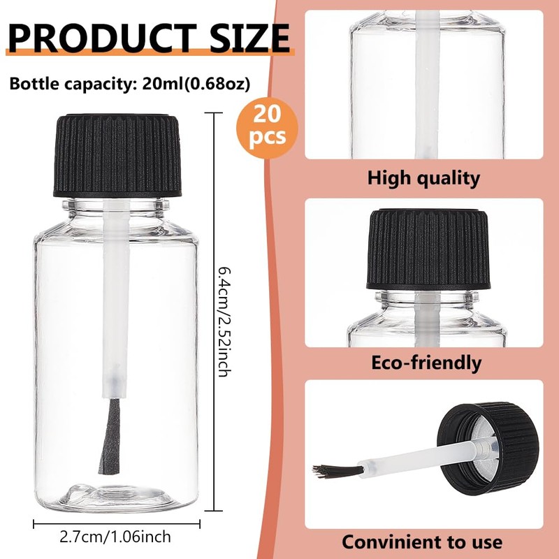 BENECREAT 20 Packs 20ml(0.68fl. oz) Plastic Brush Applicator Bottles with Black Cap, Empty Refillable Nail Polish Touch Up Bottle with Brush Top for Glue, Paint, Nail Art