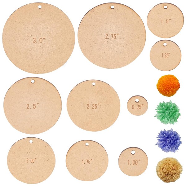 BENECREAT 20pcs 10 Sizes Pom Pom Maker Circle Wood Pompom Maker Tool Flat Round Pom Ball Craft Tool Set Trimming Guide for Needle Craft DIY Wool Knitting Craft