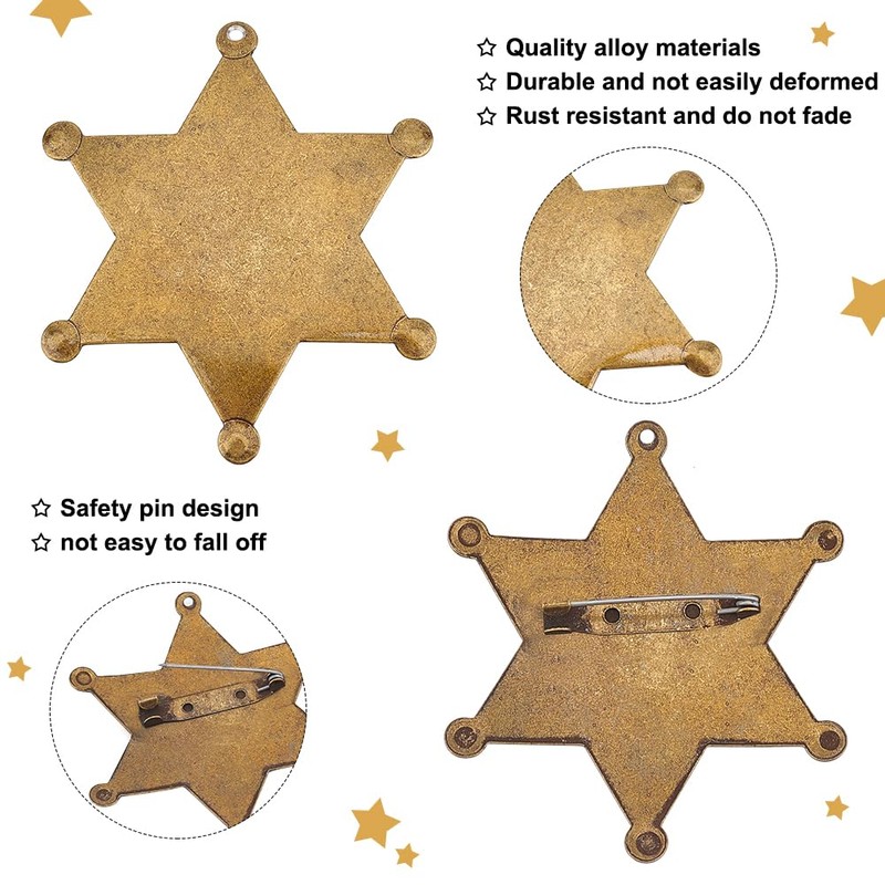 BENECREAT 2PCS Western Psycho Deputy Sheriff Badge, Mental Deputy Badge Hexagonal Iron Gift, Blank Star Pin Accessory for School Carnival Prizes, Party Bag Gift Fillers