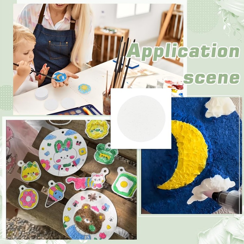 BENECREAT 30Pcs Foam Painting Paper, 2.6 Inch Round Instant Foam Puffy Texture Paper, Magic Painting Paper, Foam Texture Blank for 3D Acrylics Painting DIY Art and Craft Supplies