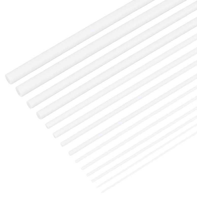 BENECREAT 48Pcs 7 Styles Round ABS Plastic Rod, Solid Acrylic Dowel Rods ABS Styrene Plastic Round Bar for DIY Model Material, Architectural Model Making, DIY Sand Table