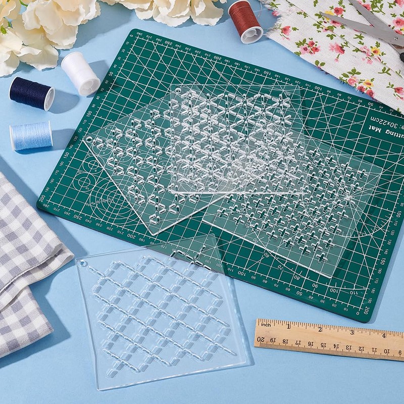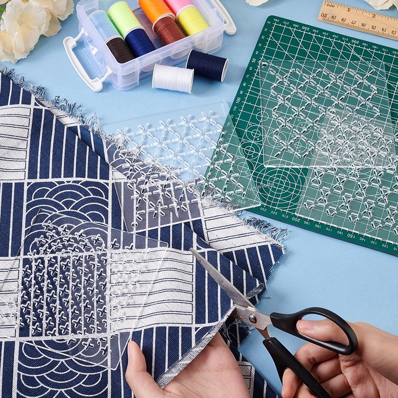BENECREAT 4Pcs Acrylic Sashiko Stencil, Cross Acrylic Embroidery Tool Drawing Line Template for Hand Quilting and Embroidery, 2.5mm Thick