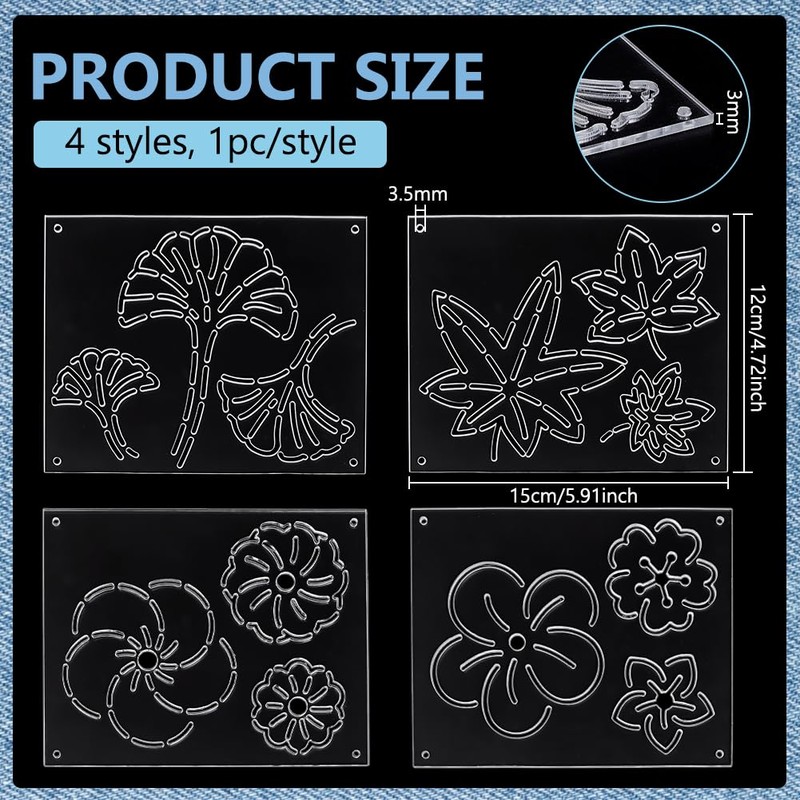 • Package Includes: You will receive 4pcs acrylic templates with patterns, Rectangle flower and leaf pattern for your sewing needs.