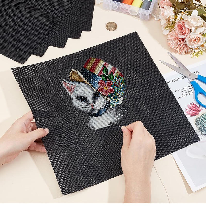 - Package Includes --You will receive 6 sheets of 14 CT black plastic mesh canvas sheets(14 CT means that there are 14 square holes in one inch), which are sufficient for your crafting needs