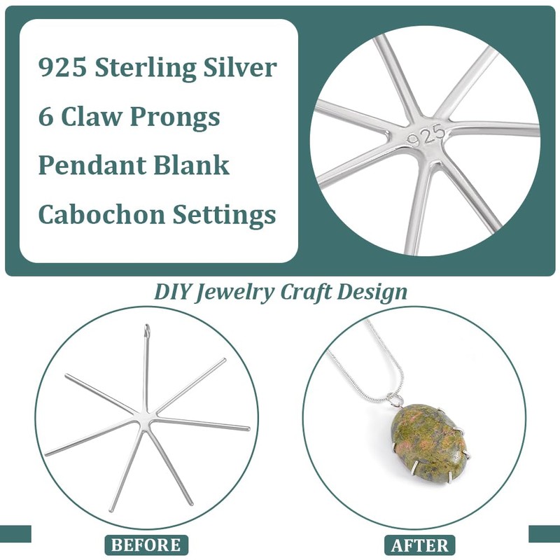 BENECREAT 925 Sterling Silver Pendant Blank, Blank Claw Pendant, 6 Prongs Gemstone Setting Pendan for Stone Claw Necklacet, Easy Mount Claw Setting Base for Handmading Necklace Jewelry