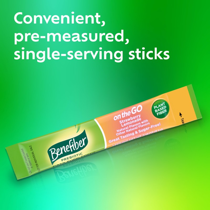 - 36 count On the Go Stick Packs of Benefiber Strawberry Lemonade Prebiotic Fiber Supplement Powder for Digestive Health - Enjoy your fiber anywhere you go