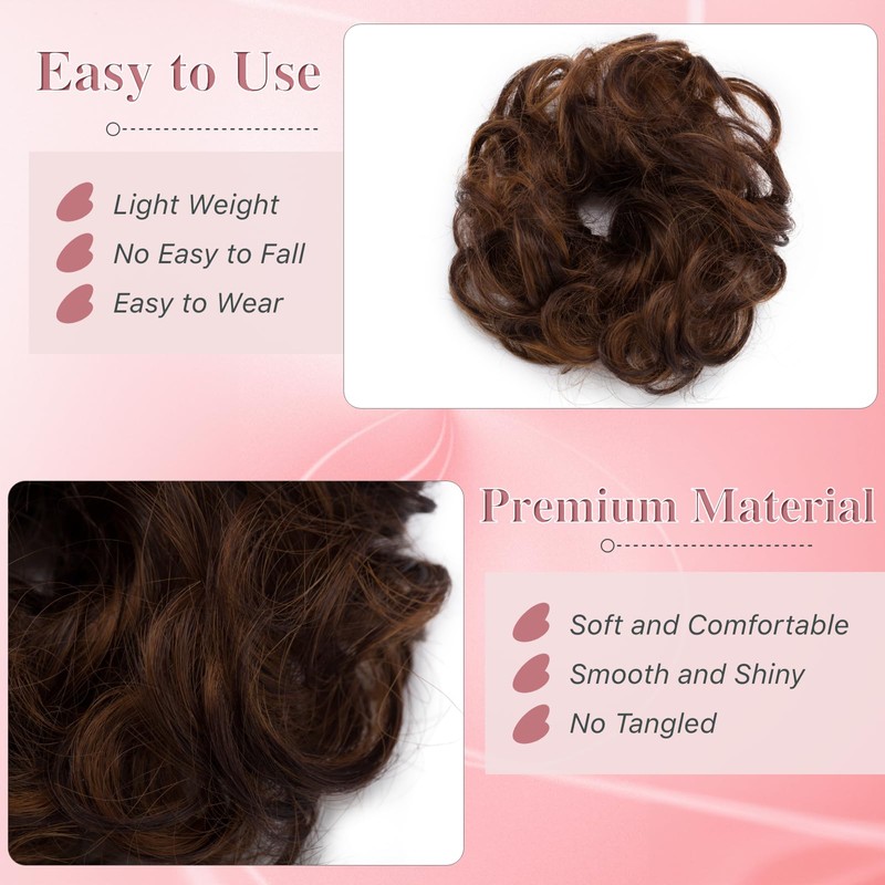 - 【Enhance Your Looks in Seconds】Messy bun hair piece are perfect for adding hair volume and fullness to a bun or a ponytail,It makes you gorgeous in seconds,elegant and lovely