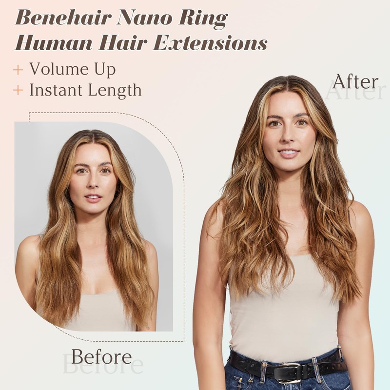 - 【100% Human Hair Extensions】Benehair Nano Ring Hair Extensions are made from 100% real human hair, ensuring that the nano beads hair extensions can blend seamlessly with your natural hair for a naturally beautiful look.