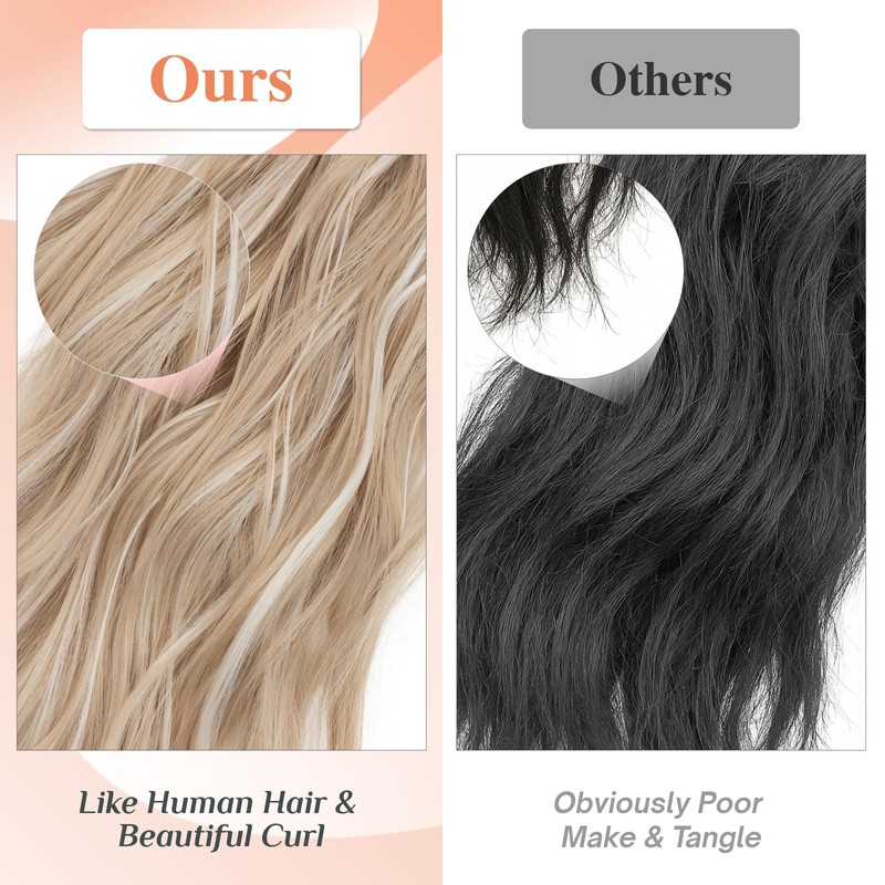 - 【Easy to Wear】 Our hair extension clip in are designed with a drawstring and the clips for a secure hold that lasts all day,Fixed with clip to your ponytail, the clip stay securely in place without damaging your natural hair