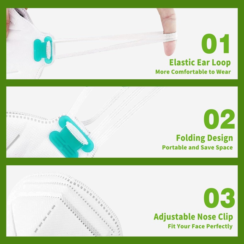- FILTER MEDIA - This N95 Masks has four filter layers, PP spunbond outer layer, PP needle-punched nonwoven inner layer 19 g, PP meltblown high filtration layer, PP spunbond layer, PP meltblown high filtration layer have double layer thickening filter media.