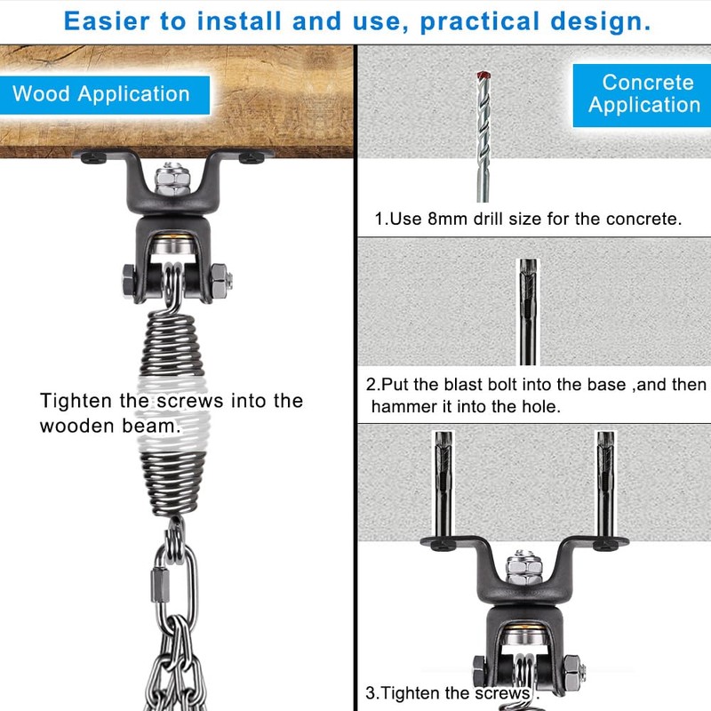 - 🥊COMFORT: Springs create a uniform suspension and smooth movement for your boxing bag. Spring can hold up to 350lbs.