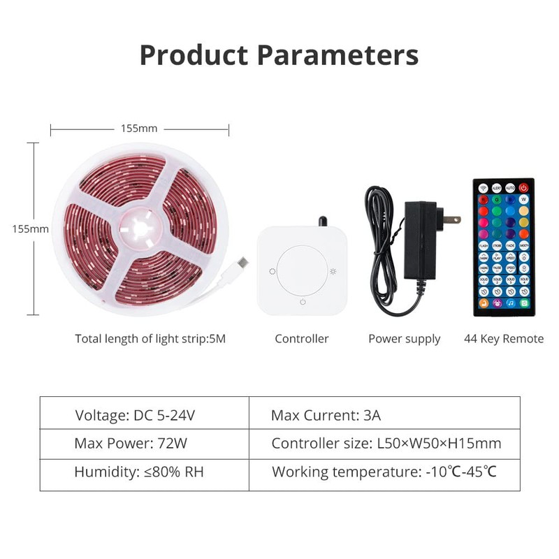 - - DIY Segmented control the color of the light strip on Tuya App or Smart life app.Please note that this product is not waterproof and is best used indoors.