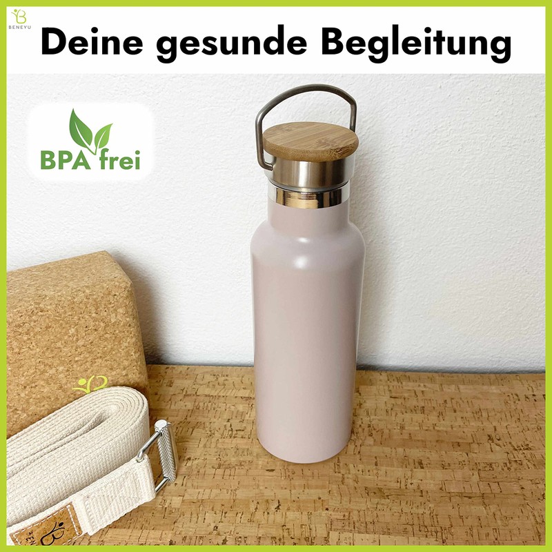 beneyu ® Sustainable Stainless Steel Thermal Water Bottle, Food-Safe and Leak-Proof Drinking Bottle, 500 ml for Everyday Use, Yoga or Your Outdoor Adventure, BPA-Free