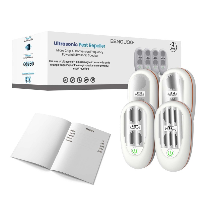 BENGUOO Mäuseabwehr Ultraschall gegen Ratten 4 Stück, Mäuse vertreiben innen Rattenabwehr nicht toxisch, anti Mücken Insekten Stecker dual Frequenz Mäuseschreck Schädlingsbekämpfer für Wohnzimmer Büro