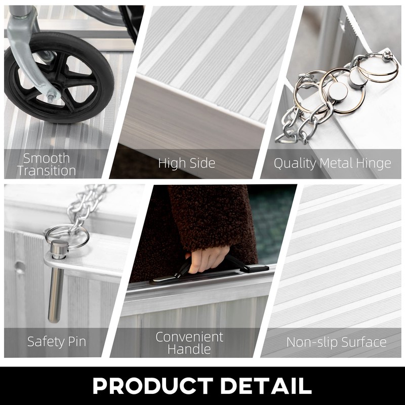 - **Heavy-Duty Construction**: Crafted from anti-corrosive aluminum alloy, this ramp supports up to 600 lbs, providing a solution for wheelchairs without compromising on portability.