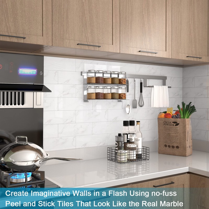 - Strong Adhesive Marble Backsplash, can be used over existing tiles or any smooth surfaces, such as glass,PVC, metal panels, wood,cement wall,painted wall.