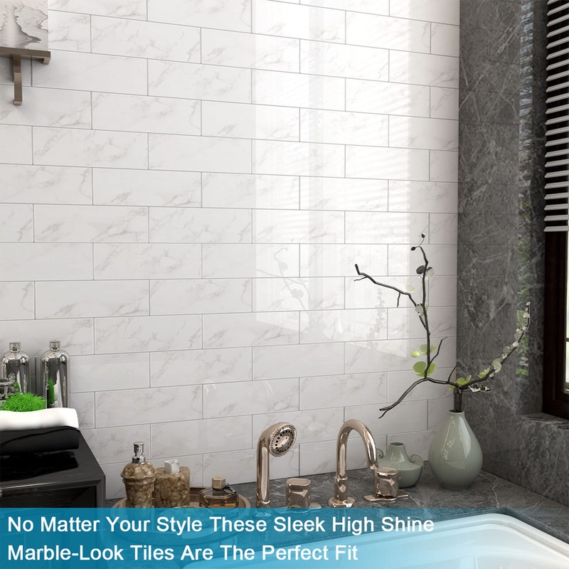 - Application Marble-Look Tile Sticker-Peel and Stick Backsplash for bathroom kitchen,fireplace tile,laundry room,interior wall.