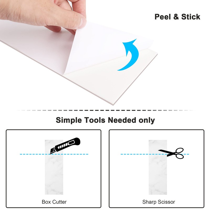 - Light Weight and Thin Peel and Stick Tiles-Made of durable resin,just 2mm thickness,easy to cut with sharp scissor or utility knife