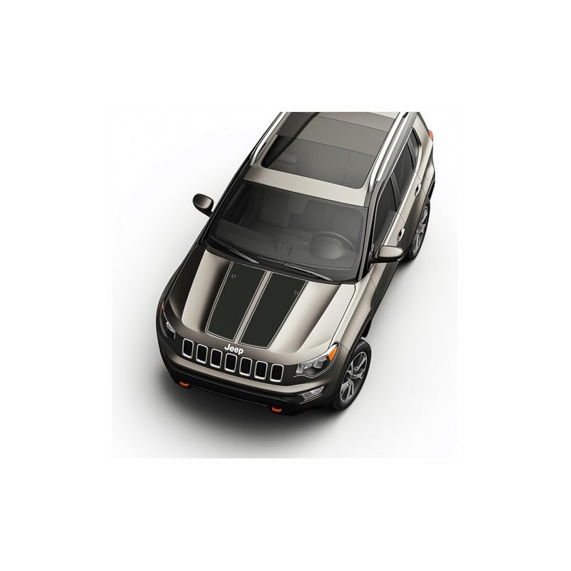 BENINI DESIGN STUDIO - Hood Blackout Dual Stripes Decal Graphics Racing Stripes Vinyl Stickers Compatible with Jeep Compass 2014-2023 (Style 4, Gloss Black) (Matte Black)