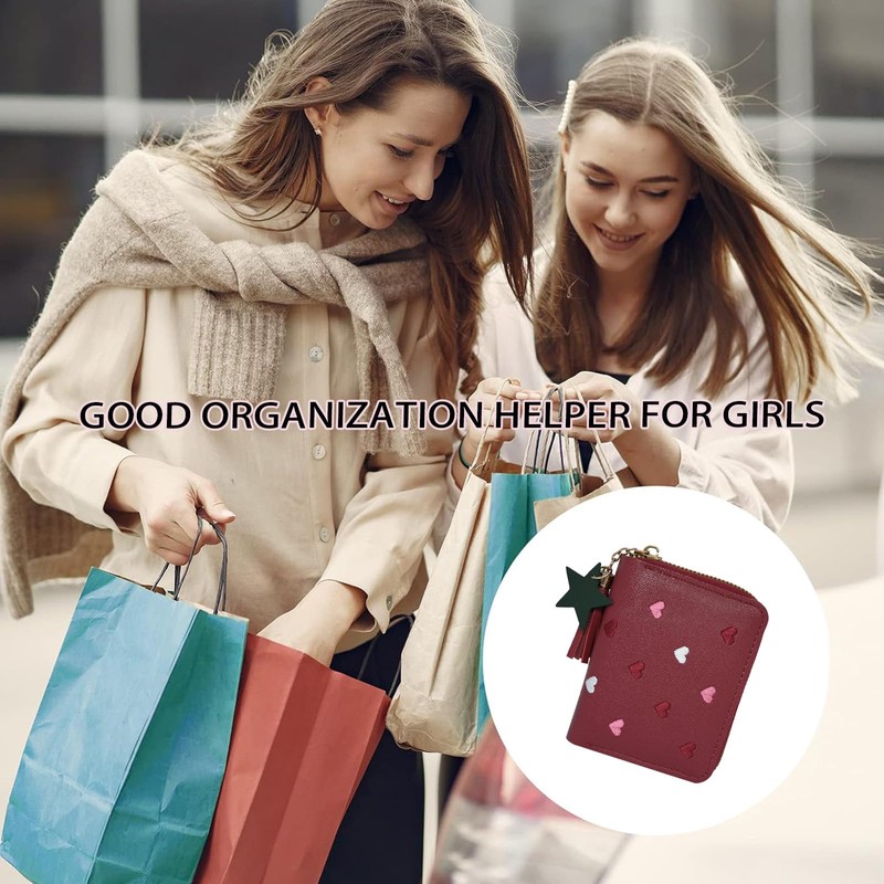 Benixmidart Women's Wallets, Heart-Pattern Wallet for Women with Small Coin Pouch, Womens Leather Wallet Card Holder Ladies Wallets with Card Slots& Star Pedant (Red, S)