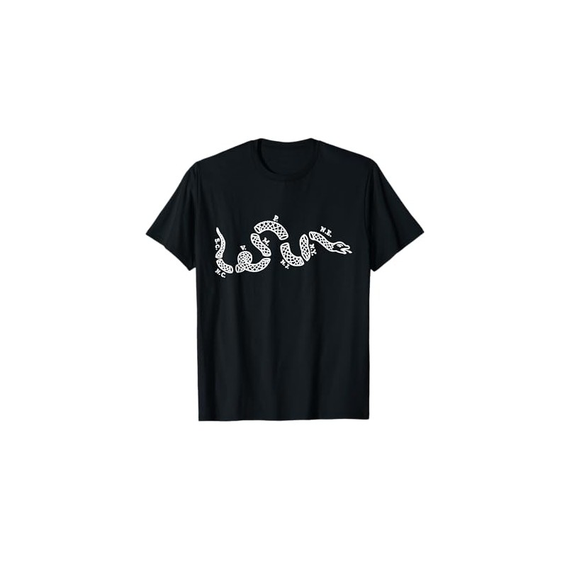 - Tee shirt with historical propaganda graphic, designed by Benjamin Franklin in 1754 in order to convince people to rebel against the British and gain independence
