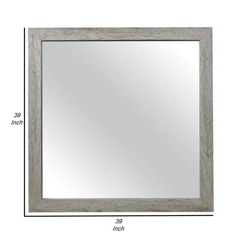 Benjara Zane 39 Inch Transitional Mirror, Square Wood Frame, Weathered Gray Veneer
