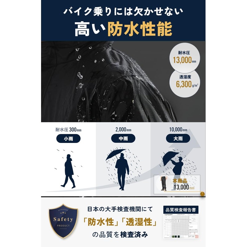 - Highly Waterproof to Withstand Heavy Rain: With a waterproof rating of 13,000 mm (13,000 mm), it has high functionality that is intended to drive motorcycles and bicycles in the rain