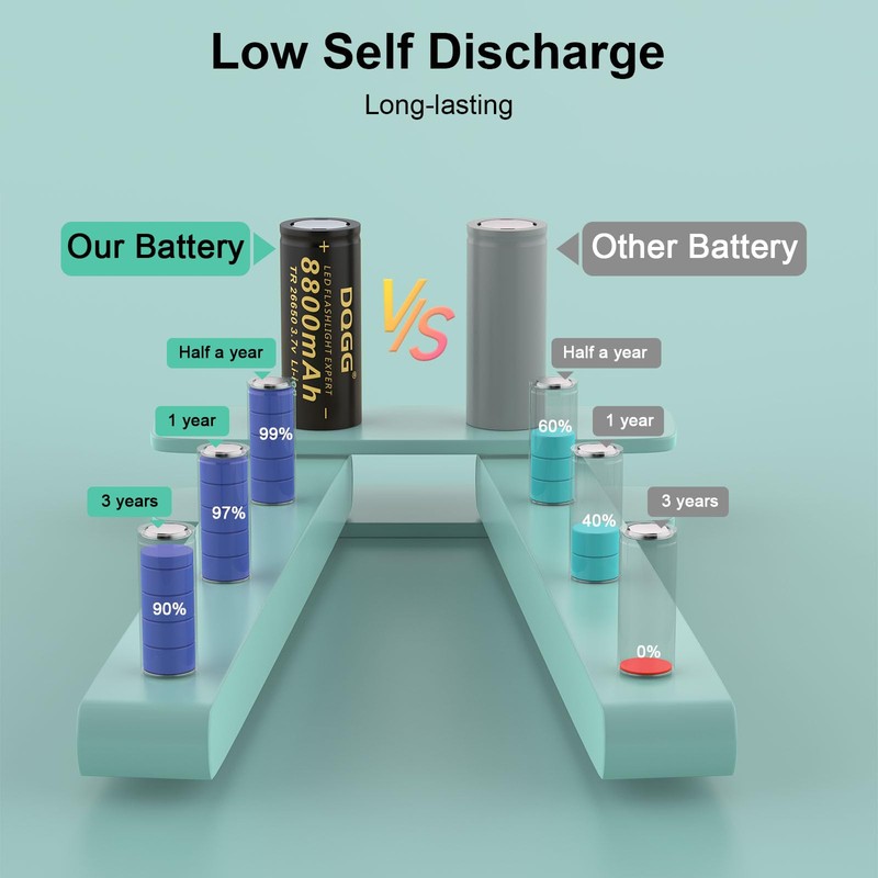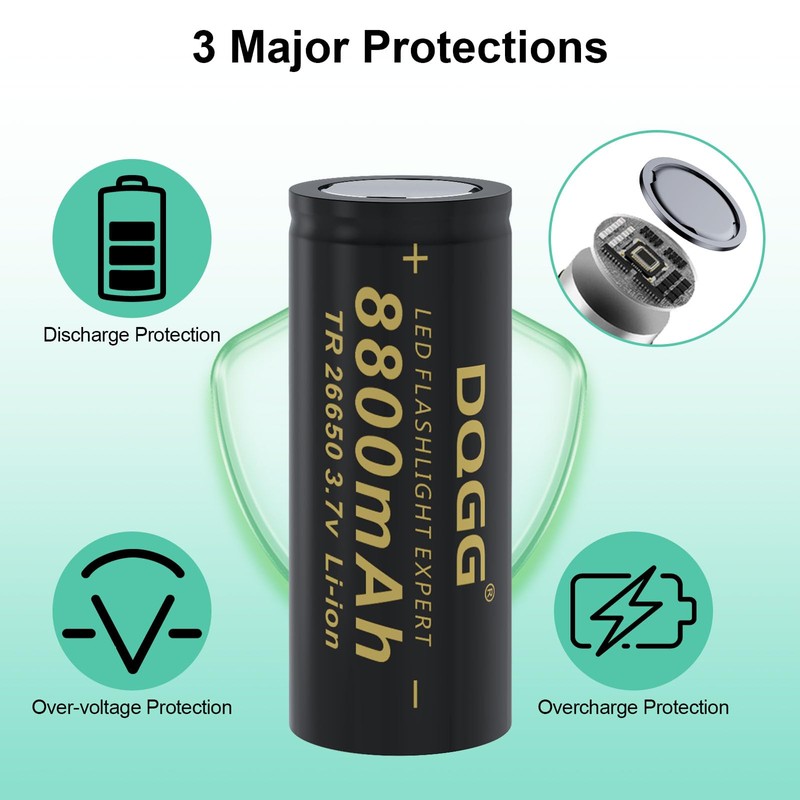 • 【Safety Protection】26650 battery has built-in multiple protection functions, such as under-voltage protection, over-voltage protection, over-current protection, over-temperature protection, short-circuit protection, and anti-reverse connection protection to stabilize the battery, so you can use it without any worries