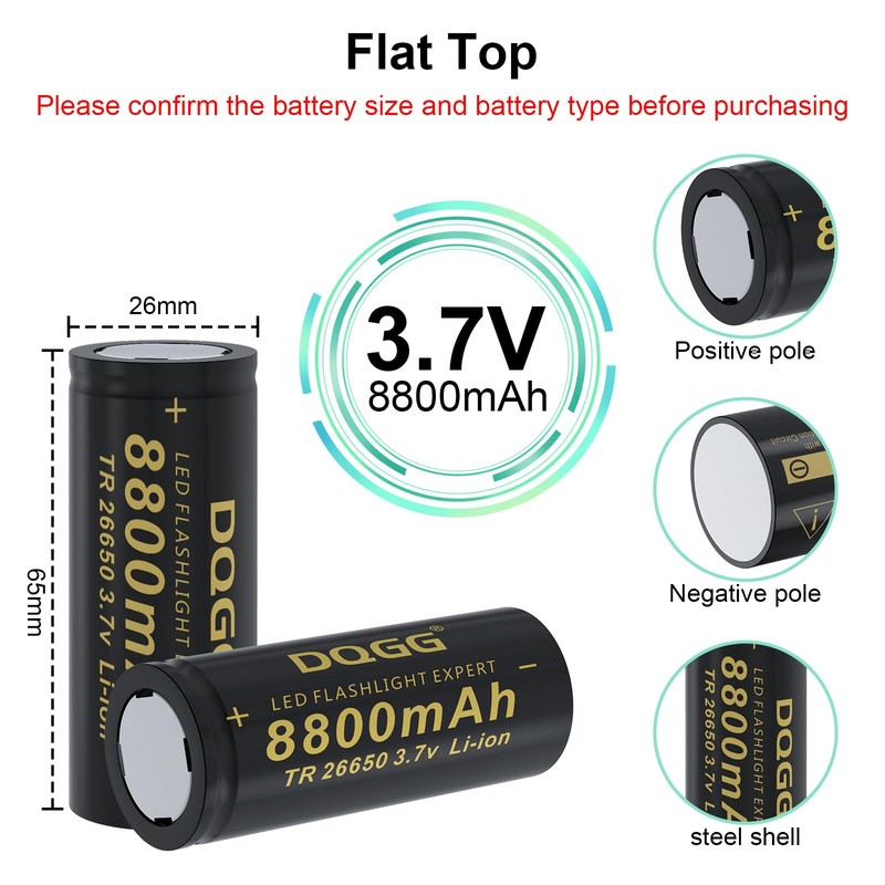 • 【Flat Top Size】65*26*26mm(2.56*1.02*1.02inch). NOTE: Please confirm whether the battery size and battery type before purchase
