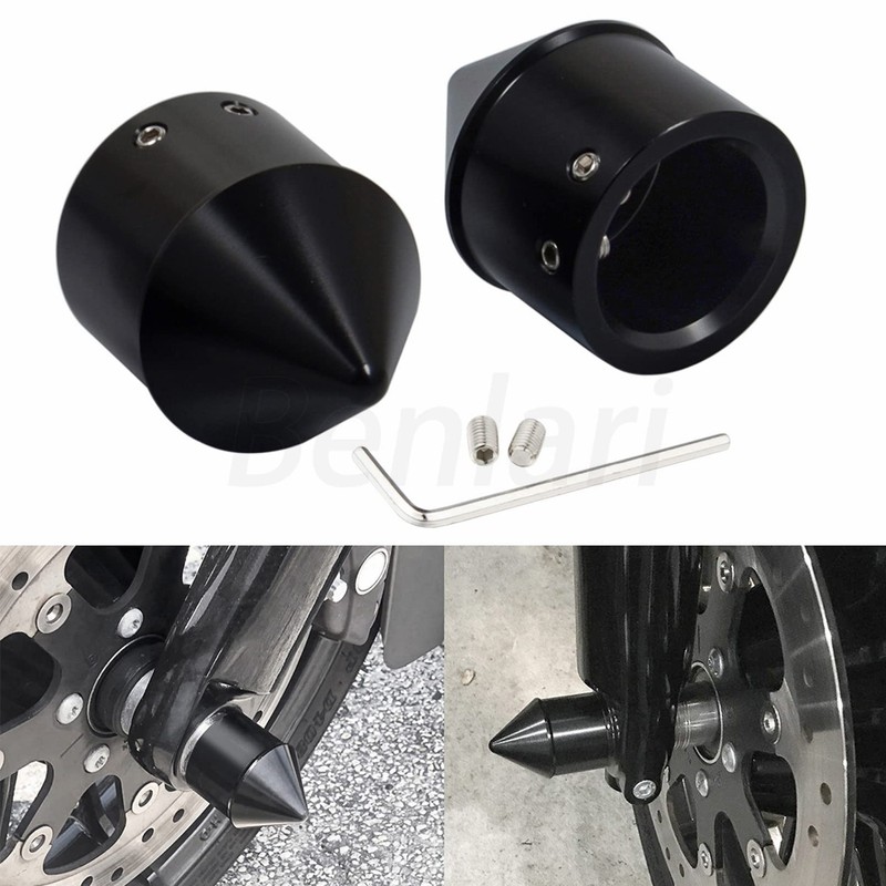 Benlari Black Front Axle Nut Covers Spike Axle Caps Compatible for Harley Touring Softail Sportster Dyna Street Glide Road King Road Glide Electra Glide Iron 883 2008-2024