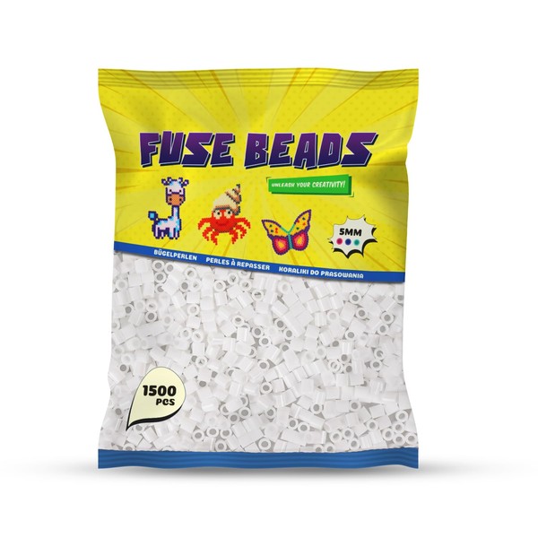 Benny Beads Iron-On Beads, 1500 Pieces, Midi Size 5 mm, Creative Craft Accessories, DIY Fuse Beads (White)