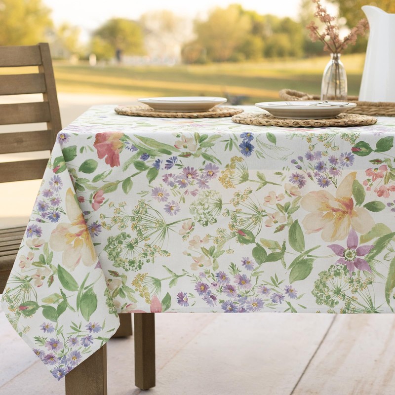 Benson Mills Floral Spring/Summer Durable Heavyweight Fabric Indoor Outdoor Tablecloth, Washable Table Cloth for Rectangle Tables, Picnic/Patio Table Covers (60" x 84" Rectangular, Antonia)