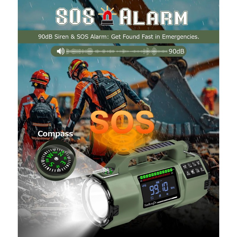 - Emergency Radio can Meet Your Multiple Needs:The hand crank solar power radio covers a lot of functions: adjustable volume, regulates backlight, 12/24H timer, automatic/manual search for radio stations,flashlight, sos alert sound, middle size, does not take up too much space