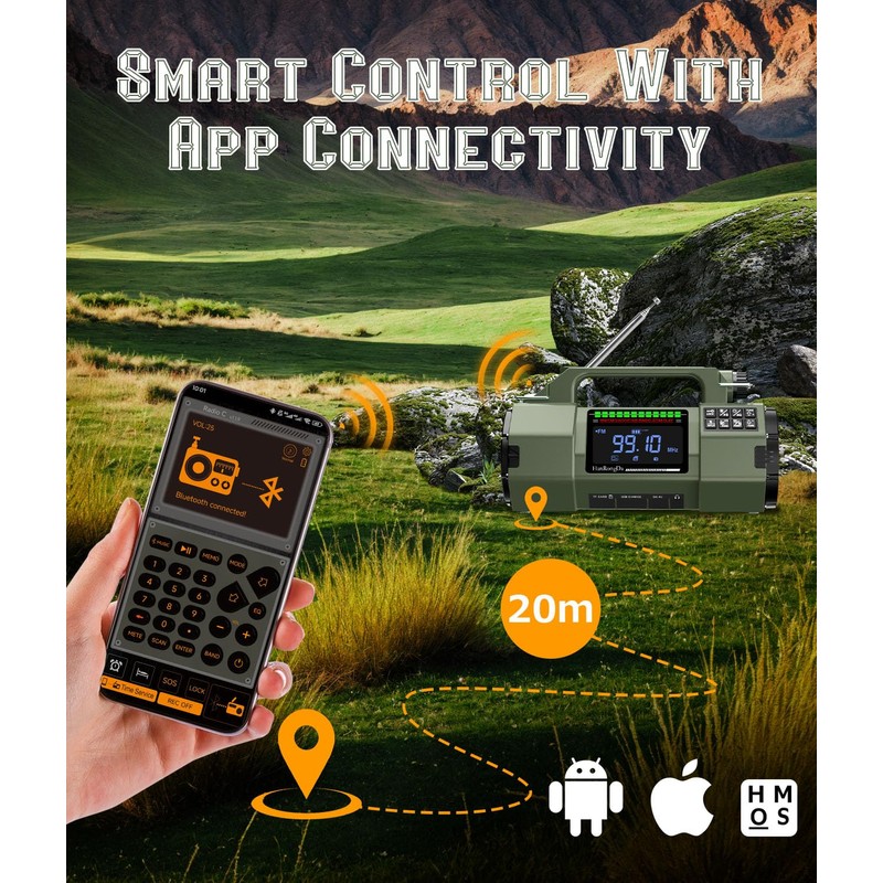 Bluetooth 5.2 & App Control:Control this windup radio remotely (20m range) or stream via Bluetooth 5.2. Play 256GB TF cards or use as PC speaker through Type-C.Connect to computer via data cable and use as computer speaker.