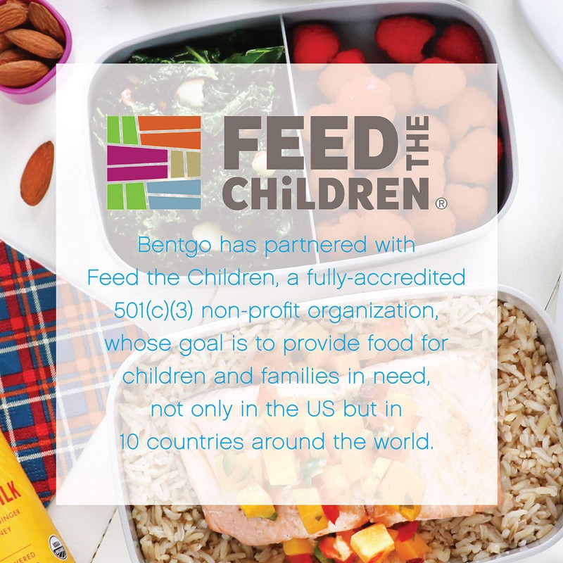 - PURCHASE WITH A PURPOSE: Bentgo continues to be a proud supporter of Feed the Children, a 501(c)(3) nonprofit that gives hope and resources for hungry children and families. Since 2017, Bentgo has donated more than $200,000 to help put an end to hunger.