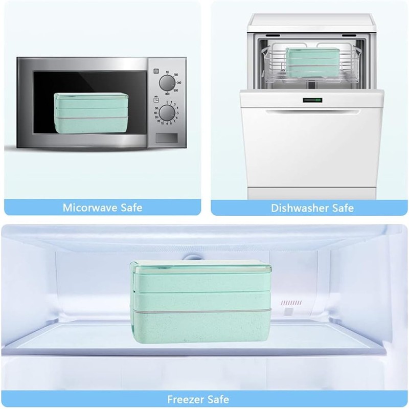 - 【3-In-1 Stackable Lunch Box】A bento box comes with a spoon. 3 separate compartments portioned perfectly according to your daily nutrition. (Note: Please remove the lids when put in the microwave & dishwasher).