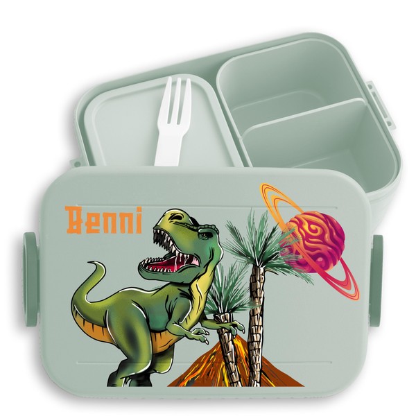 Bento Box Midi Mepal Bento Box - Dino Dinosaur - Lunch Box with Dinosaur Motif for Children Lunch Box with Dino Design for School Children Portable Dino Lunch Box for School - 900 ml - Sage Green