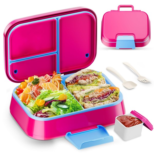 Bento Lunch Box Kids, 4 Compartments Bento-Style Container, Leak-Proof Bento ...
