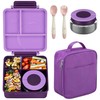 Bento Lunch Box Set for Kids with 8oz Soup Thermo, Leak-Proof Lunch Containers with 4 Compartment, Kids Thermo Hot Food Jar and Insulated Lunch Bag for Kids to School-Deep Purple